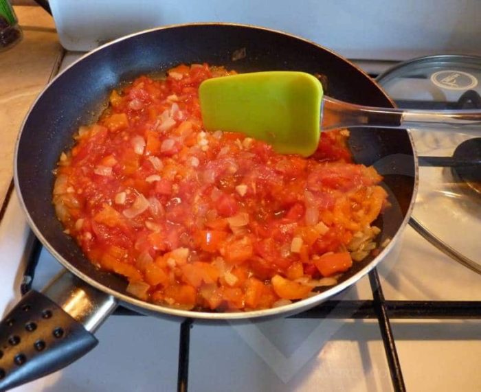 - В обжаренный овощи добавить помидоры и тушить под крышкой 5-10 минут.
