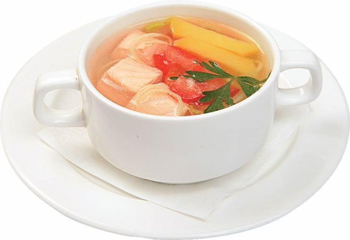 Перед подачей, в тарелку выложить кусочки филе и залить их готовым супом. Приятного аппетита!