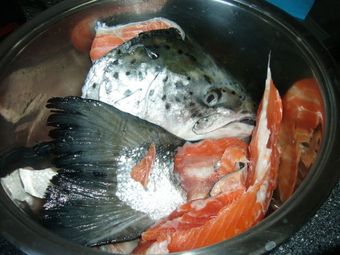 - голова, хвост и плавники семги.