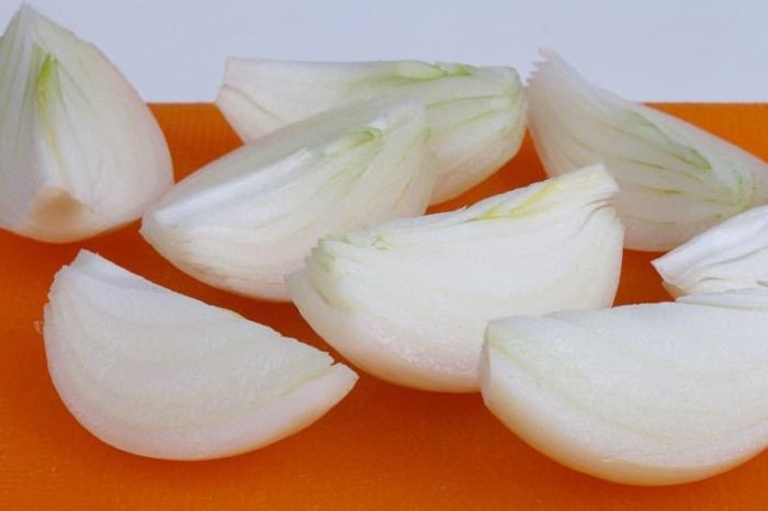 Лук достаточно разделить на четвертинки.