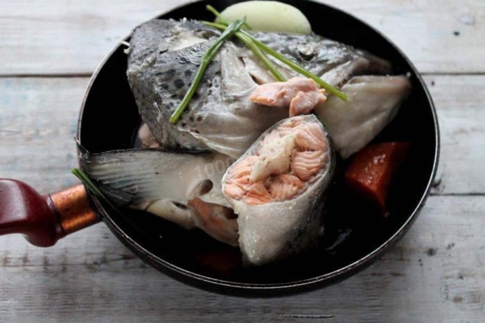 Блюдо из вареной головы и хвоста горбуши хорошо готовить и зимой, и летом. Ее можно подавать в горячем и холодном виде. Филе можно замариновать солью и специями, а затем запечь в духовке.