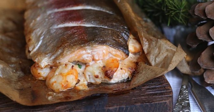 Так как название «по-царски» вновь подразумевает русскую кухню, уже сейчас можно примерно предположить, какой список ингредиентов здесь потребуется. Но некоторые продукты не будут очевидными, и рецепт с форелью от этого хуже не становится.