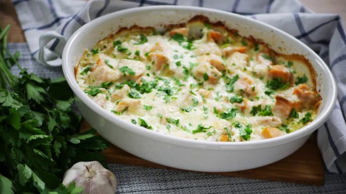 Те, кто действительно любят, как сочетается картофель и рыба, но уже устали делать пюре и хотят чего-то новенького, оценят этот рецепт. Здесь будет делаться целая запеканка, а ингредиенты для неё потребуются следующие: