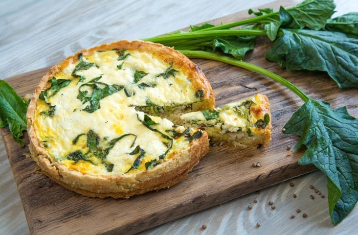 Перед тем, как вытащить пирог необходимо убедиться, что в серединке он стал достаточно густым. Необходимо дать время, чтобы киш обязательно постоял и начинка полностью застыла и только потом нарезать на порционные куски.