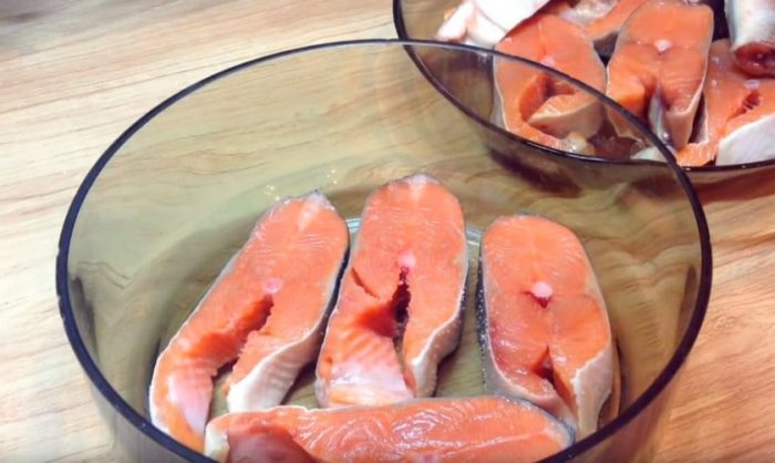- Далее поменять куски горбуши местами и оставить в холодильнике ещё на 12 часов.