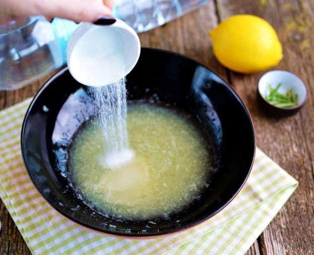 - В чашке смешать соль вместе с сахарным песком. Стандартная пропорция соли и сахара — 2:1.