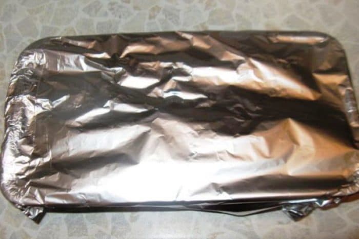 Фольга плотно закрывается, чтобы сок не вытек на противень в процессе приготовления.