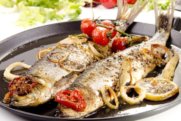 Готовая рыба режется на кусочки любого размера, а потом подаётся к столу.