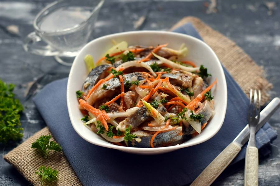 Маринование по-корейски применяется не только к моркови, но и к рыбе, а чаще всего в этом рецепте встречается сельдь. Всё благодаря тому, что её вкус, приправленный солью и перцем, так только лучше раскрывается, а «по-корейски» как раз предполагает, что должно быть солоно и остро.