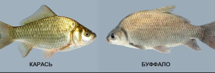 Неопытные рыбаки часто путают рыбу буффало с серебряным карасем. Сходство действительно имеется, но отличий больше. Помимо формы и размера тельца, отличительной чертой карася становится его прочная чешуя на брюшке, которую проще срезать чем почистить обычным методом. Буффало же наоборот, чиститься легко и просто, часто даже в процессе транспортировки.