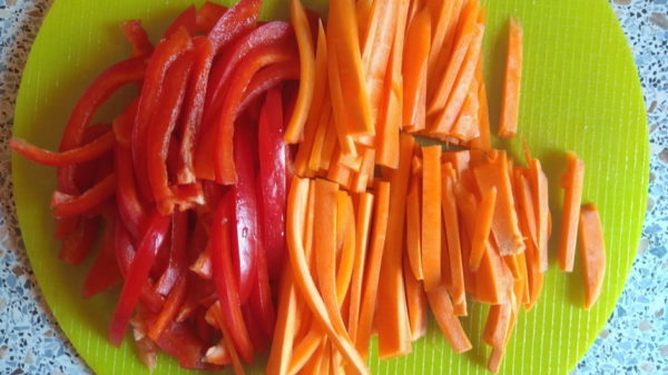 Все овощи нарезать соломкой.