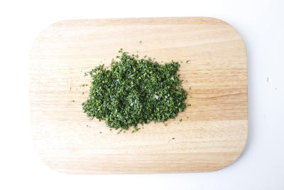 Петрушку промойте и нарежьте вместе со стеблями, затем смешайте с сухарями и щепоткой соли.