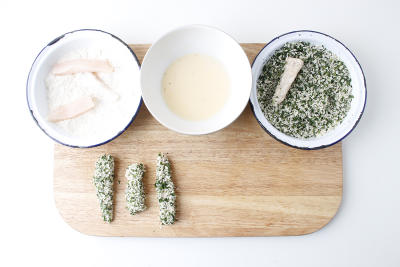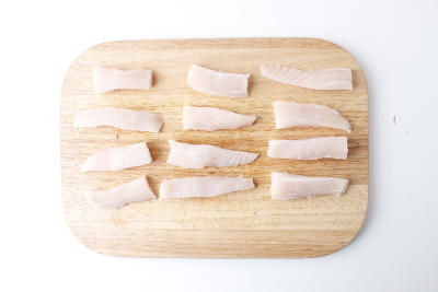 Рыбное филе промойте и нарежьте на небольшие вытянутые брусочки.
