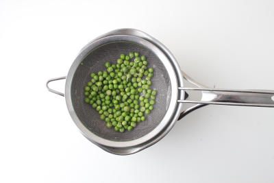 В кастрюле вскипятите воду, добавьте в кипяток горошек и щепотку соли. Варите 4-5 минут на сильном огне, затем слейте воду.