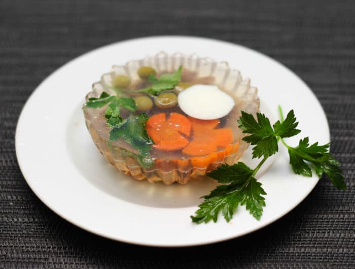 - Полностью покрыть филе рыбным бульоном и убрать для желирования на 8-10 часов.