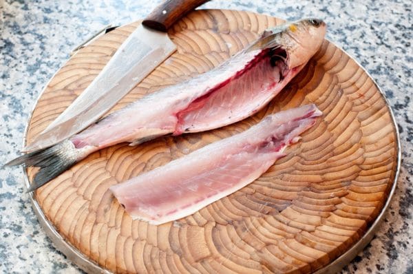 Взять кефаль и очистить её от чешуи, тщательно выпотрошить внутренности и промыть под проточной водой. В процессе потрошения важно не задеть желчный пузырь, иначе кефаль будет иметь неприятный горький привкус.