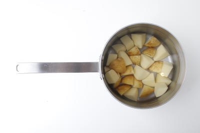 Разогрейте заранее духовку до 220 градусов. Картофель тщательно вымойте и нарежьте на крупные кусочки (можно вместе со шкуркой, если он молодой). Положите картошку в кастрюлю, залейте водой и поставьте на сильный огонь. После закипания варите 12-15 минут до мягкости.