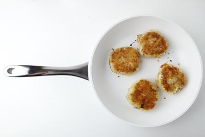 В сковороде с антипригарным покрытием нагрейте растительное масло, выложите котлеты и жарьте по 2-3 минуты с каждой стороны на средне-высоком огне до хрустящей корочки.