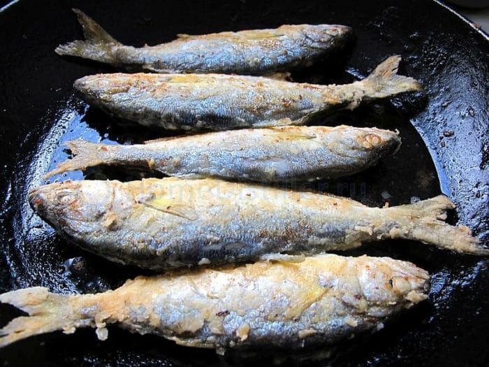 - Для походных условий отличным вариантом будет приготовление на сковородке, многие рыболовы говорят, что луфарь можно даже не чистить. Но для нашего рецепта необходимо промыть тушки под холодной водой, удалить все внутренности, почистить и протереть сухим полотенцем.