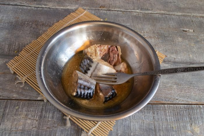 - Скумбрию разминаем вилкой, удаляем хребты если попадутся.
