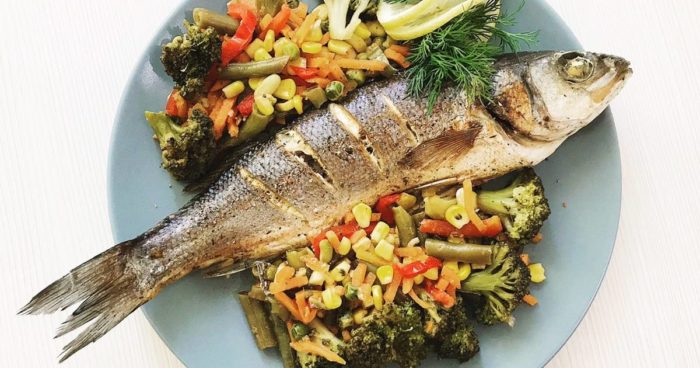 Калорийность жареного сибаса составляет 95 ккал — из расчета количества продукта (2 тушки). На выходе получается две порции.