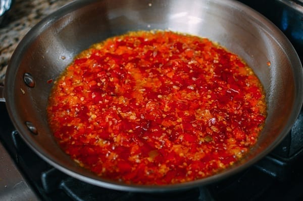 В оригинале рецепта используется перец Дуо Цзяо (Duo Jiao), в котором чили нарезается перед маринованием. Если у вас не получится достать такой вариант, берите любой маринованный или квашеный чили (или приготовьте самостоятельно) и просто порежьте перед добавлением в блюдо.