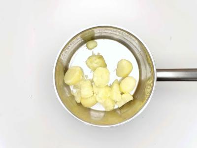 Поместите картофель в кипящую воду с небольшим количеством соли. Варите на среднем огне 12-15 минут до мягкости, потом слейте воду.