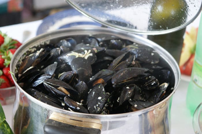 - Сложить в отвар моллюсков, проварить около пяти минут.