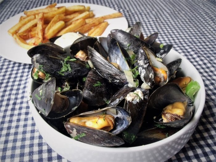 К мидиям с бульоном хорошо подавать тосты.