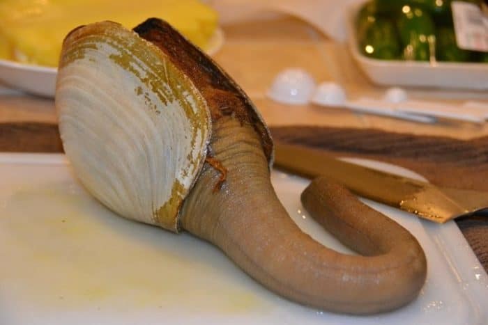 Интересно! Мужчины, которые едят гуидак морской моллюск, считают, что его мясо благотворно влияет на потенцию. Всё это из – за выдающихся размеров сифона.