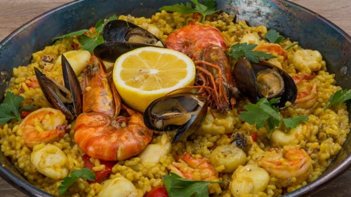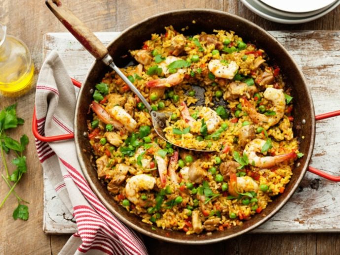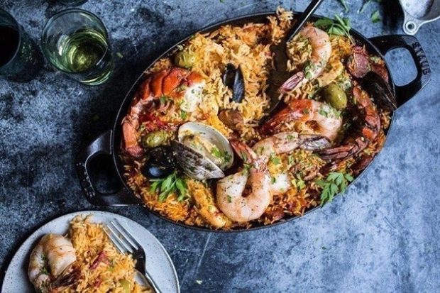 Классическая паэлья с морепродуктами — название традиционной испанской рисовой каши, которую готовили семьи моряков дома из подручных ингредиентов. Она должна тушиться на открытом огне, который насыщает блюдо аппетитным «дымком».