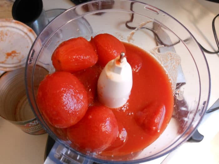 Помидоры очистить от кожуры, для чего обдать кипятком и опустить в ледяную воду – так легче будет сниматься шкурка. Мякоть томатов измельчить в блендере.