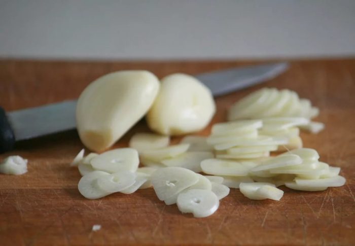 - Почистите чеснок, помойте его и нарубите мелкими кусочками. Можно даже пропустить через пресс.