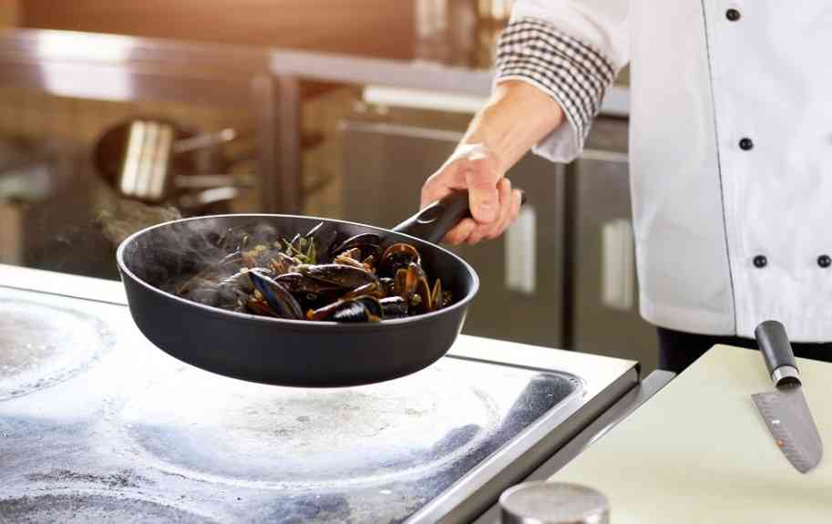 - Убавляем огонь до минимального, а затем аккуратно помещаем в жидкость мидии.