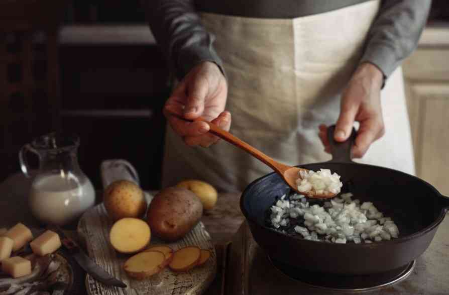 - В большую кастрюлю поместите лук и обжарьте его на масле пару минут до мягкого состояния.