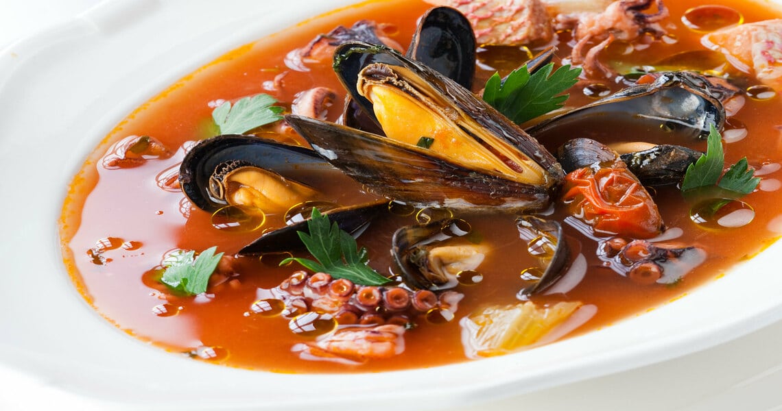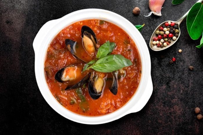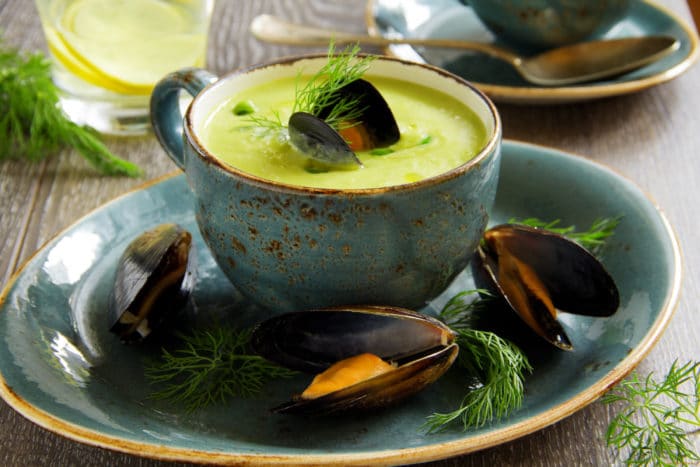 Мидии однозначно стоит попытаться полюбить и подобрать наиболее любимые варианты рецептов. Великолепные супы из мидий, как на фото, будут частым украшением обычного будничного обеда.