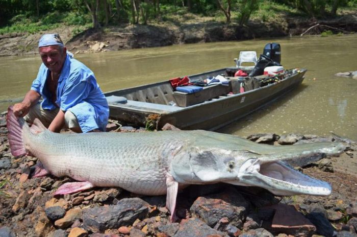 Аллигаторова щука – древнейший хищный вид и к обычным имеет малое отношение. Относится к семейству панцирных. Научное название – Atractosteus spatula. Одна лишь внешность говорит о том, что живут они уже очень давно, так как мало изменились в процессе эволюции. Выглядят так же, как 150 миллионов лет назад.