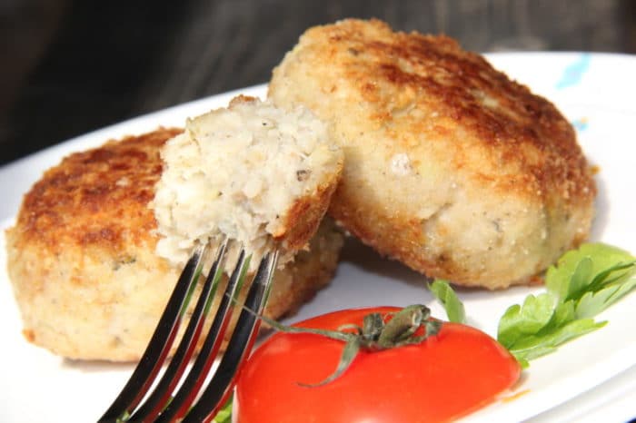 - Для пышных рыбных котлет фарш отбивают руками, как мясной.