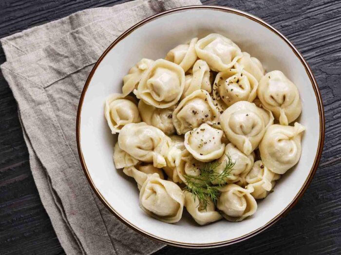 - Подаем на стол со сметаной, хреном, чесночным соусом или сливочным маслом на выбор. Вид вкусных, нежных пельменей можно оценить по фото.