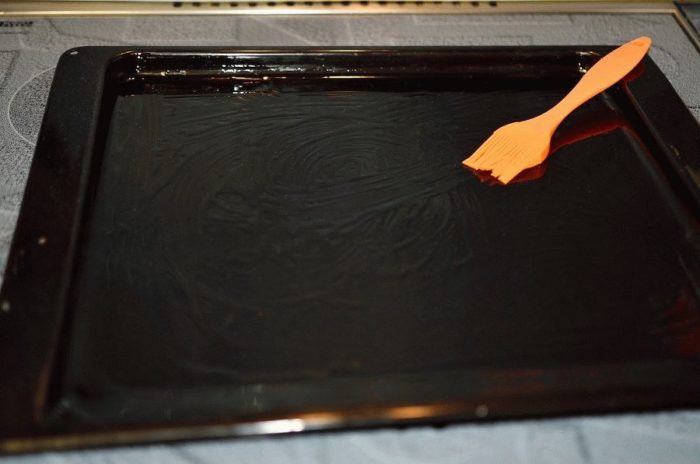 - Поставить сковороду на плиту, смазать маслом.