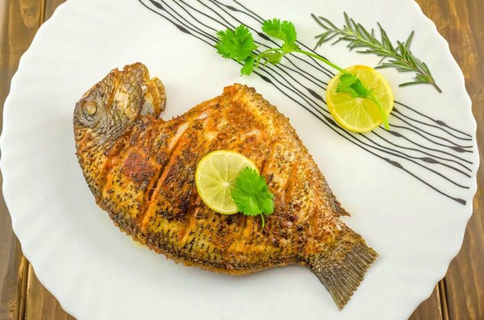 Подавать жареную рыбу Орео можно с любым гарниром. Холодная она так же вкусна, как и горячая.