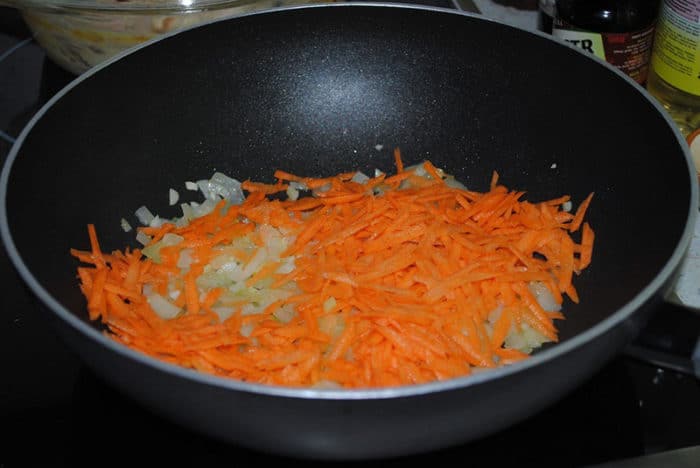 - Грибы обжариваем и соединяем с остальными овощами, затем перекручиваем смесь на мясорубке или измельчаем в блендере.