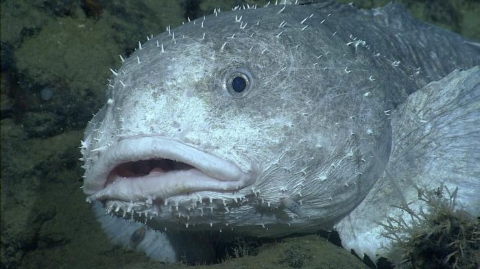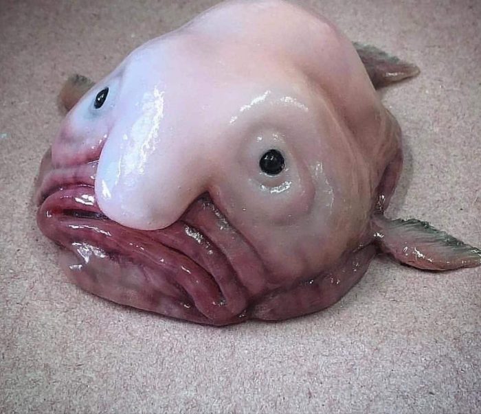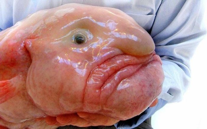 Выловленное существо похоже на капельку коричневого или розового цвета без чешуи, состоящую из желе. Длина тела редко превышает 30 см, вес до 2 кг.