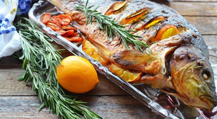 Фаршированный сазан в маринаде – это рождественское блюдо, украшающее праздничное застолье. Рыбка жарится в течение двух часов. В результате кулинар получит четыре порции вкусного карпа.