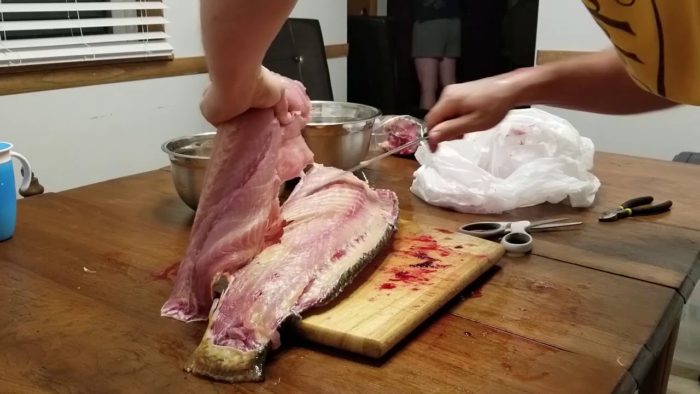 - Очистите рыбу от чешуи и внутренностей, удаляя жабры, плавники и голову. Не забудьте снять темную пленку с внутренней поверхности брюшной полости рыбы.