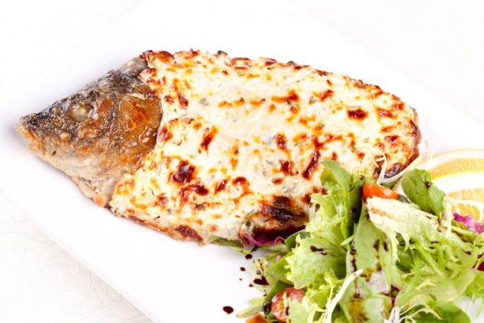 Запеченный карп в сметане – сбалансированный вариант вкусного блюда, который будет уместен на обед или на ужин, как повседневное или праздничное блюдо. Жареный карп тоже неплох, но в нем больше жира, поэтому полезнее запекать.
