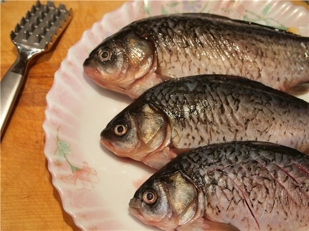 Прежде чем приступать к приготовлению, важно грамотно замариновать карася. Это не только усилит вкус готового блюда, но и позволит удалить все болезнетворные вещества. Солят рыбу несколькими способами, но наиболее популярными являются: