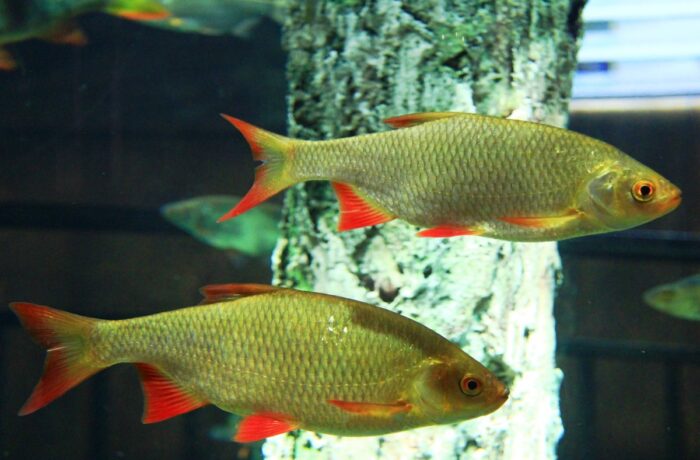 - Scardinius scardafa относится к исчезающему виду, который был широко распространен в Южной Европе, на Пиренейском полуострове. Сегодня среда обитания ограничена итальянским глубоководным озером Сканно. Отличительными чертами данной особи является высокой туловище и округлые плавники. Взрослая особь достигает в длину 35 см.