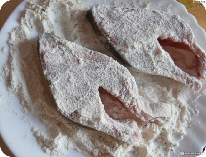 Требуется обвалять рыбу в мучной массе.