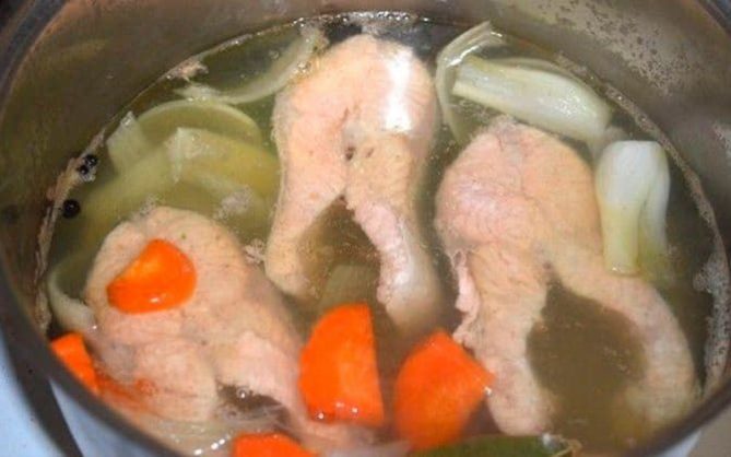 Отварить рыбу 5-7 мин., удалив перед этим маленькие косточки.